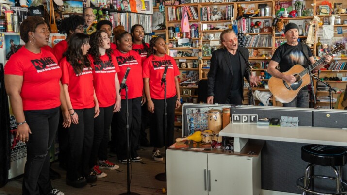 La voz y la guitarra de U2 grabaron un Tiny…